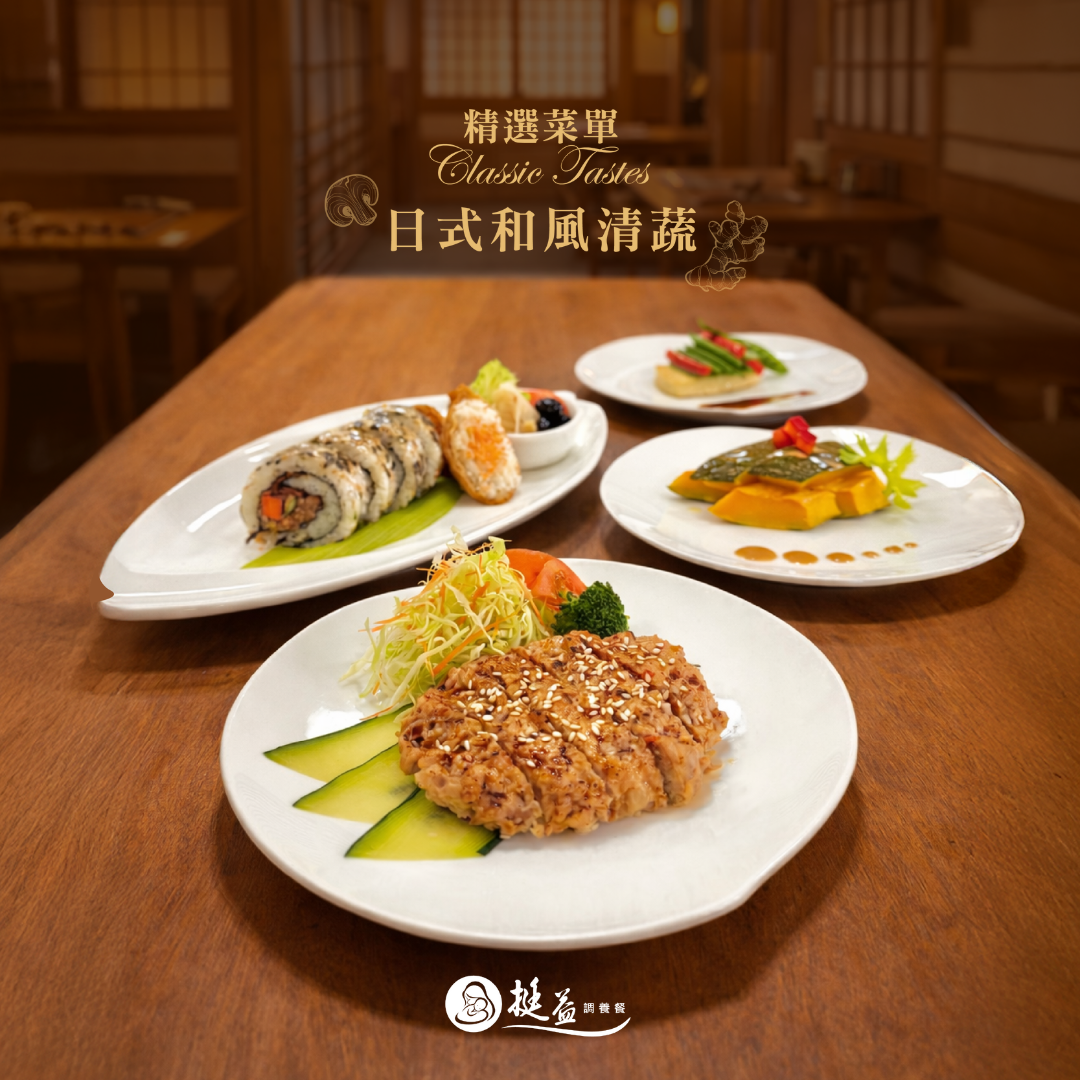 挺益精選四道和風植食料理,以清爽日式風味入菜,結合天然植蔬與細膩調味,呈現溫潤、純淨又舒心的餐桌時光。