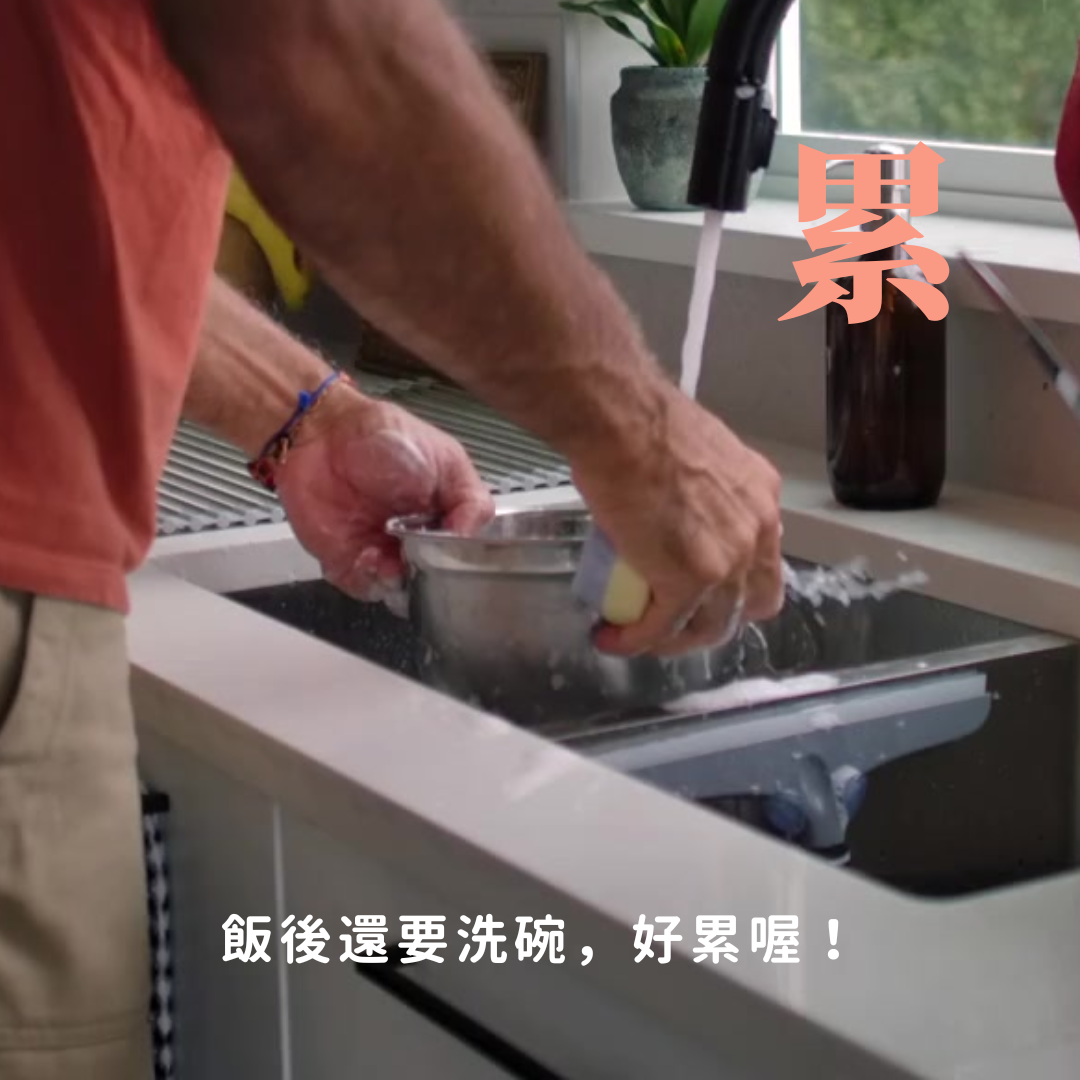 飯後還要洗碗,好累喔!